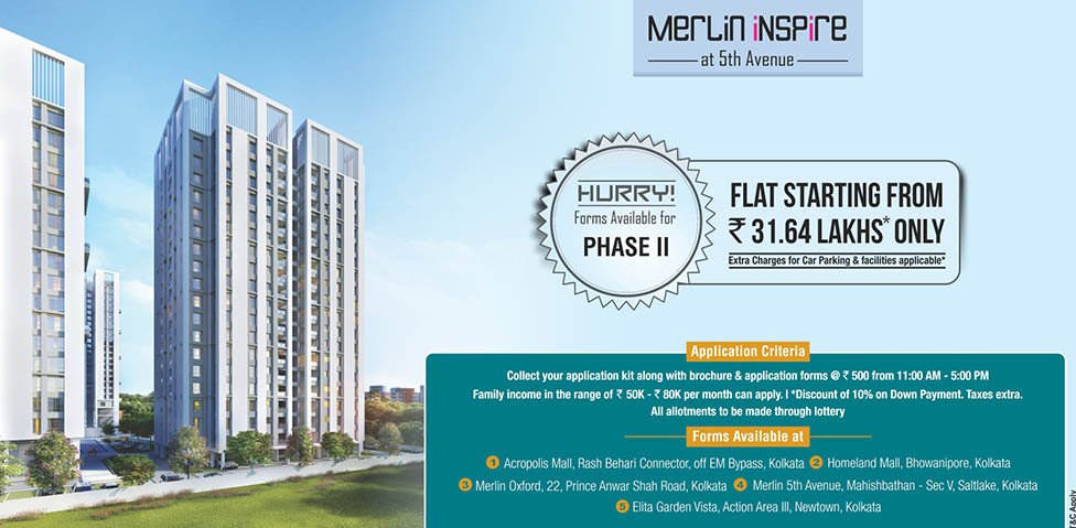 An affordable 1 BHK Lifestyle Apartment in Kolkata starting from 12.43 lakhs only (Extra charges for Car Parking & facilities applicable). The Project is located close to Salt Lake - New Town. Get an additional benefit of Rs. 267000.00 under interest subvention scheme on Home Loan. Subsidised Rate approved by West Bengal Merlin Housing Board, Govt. of West Bengal.